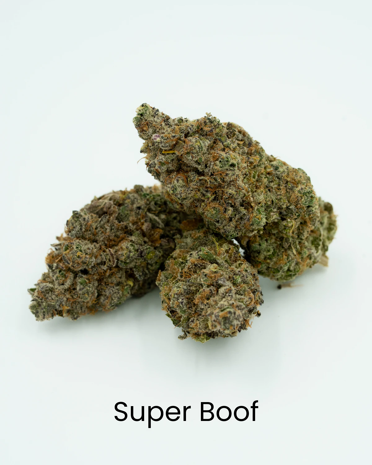 Super Boof is a zingy hybrid weed strain made by crossing Black Cherry Punch and Tropicana Cookies.. It has the same chunky, deep green and purple-dappled buds as its parents that look wet with silver calyxes. The effects of Super Boof are relaxing and giggly. Reviewers on Leafly say this strain makes them feel euphoric, creative and focused. The dominant terpene is myrcene.