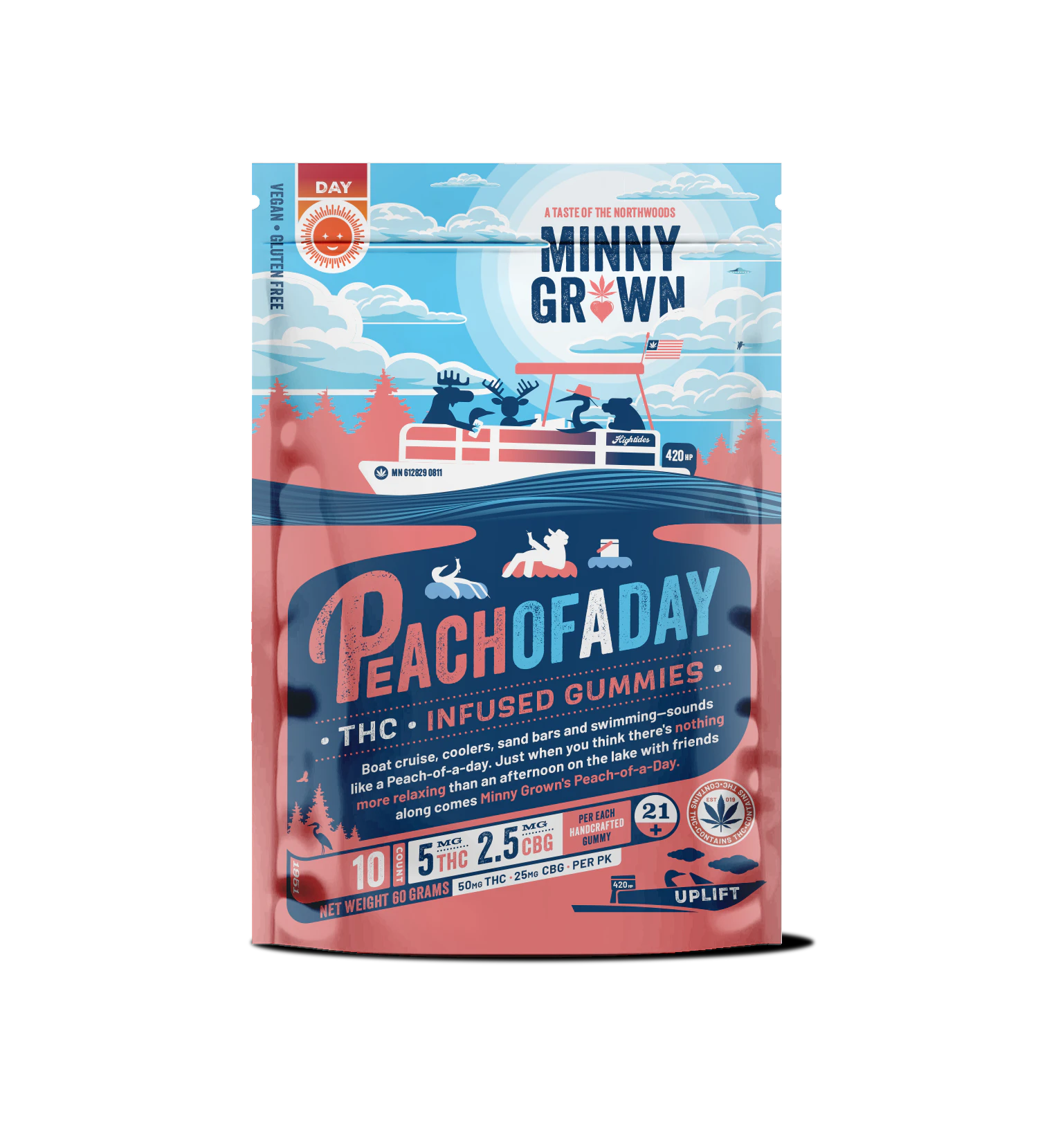 Boat cruise, coolers, sand points and swimming, sound like a peach-of-a-day. Just when you think there’s nothing more relaxing than an afternoon on the lake with friends, along comes Minny Grown’s Peach-of-a-Day gummies. *Now including CBG*