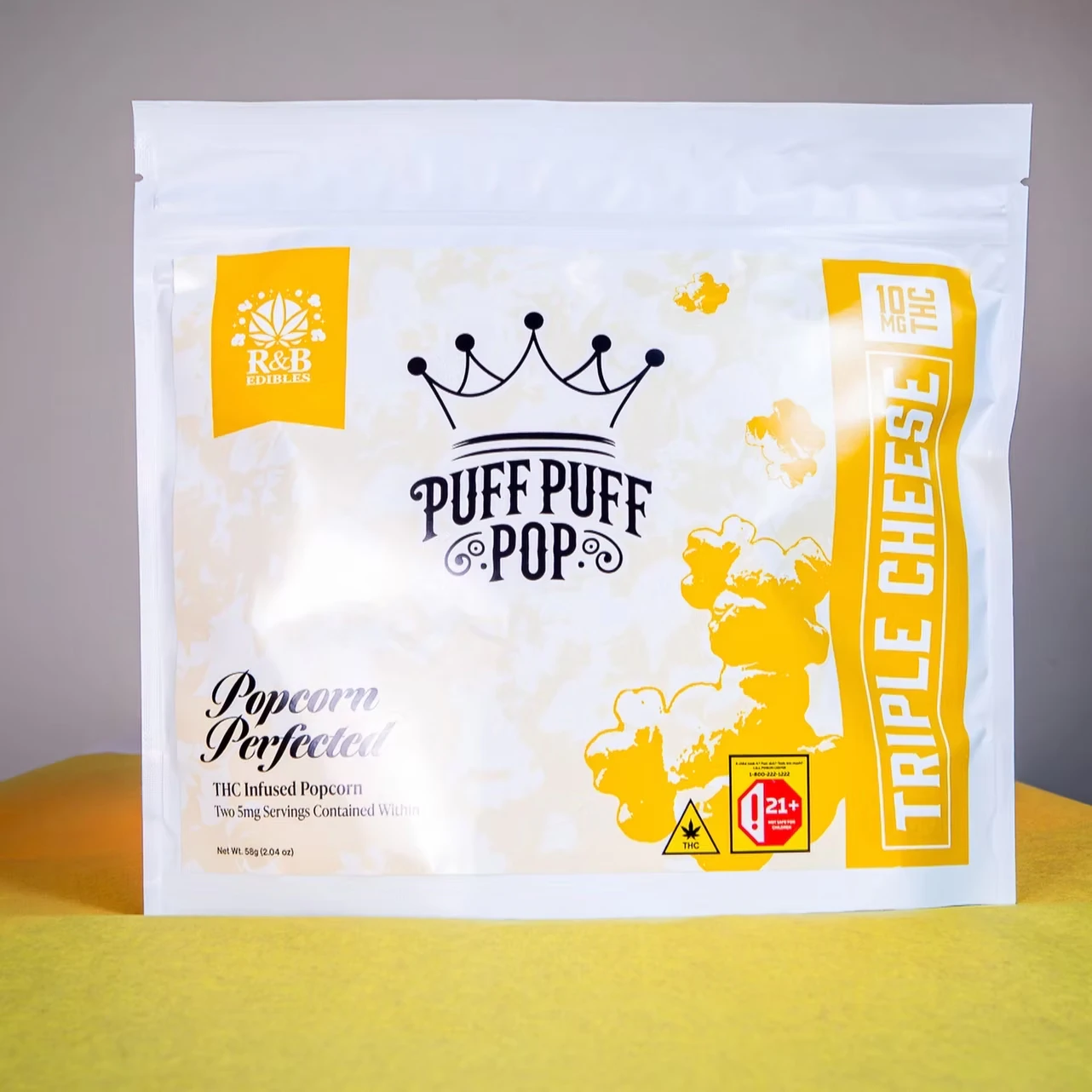 This mouthwatering snack takes our classic movie-style popcorn and elevates it with a rich triple cheese flavor of yellow cheddar, white cheddar and parmesan combination and premium THC infusion.